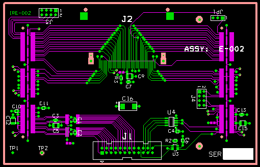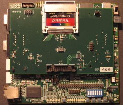 This is a custom EXP expansion module for the Xilinx Spartan 3A-DSP S3D1800A demo board. It basically provides the hardware interface to a type I or II Compact Flash card. The board also includes a high speed LVDS interface (J1) for transmitting data to another board. The FPGA can read data from the CF card at up 100 Mbytes/sec continuous (UDMA mode 5) and output it through the LVDS interface.
