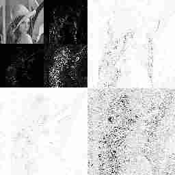 The following example illustrates the discrete wavelet transform using 9 tap symmetrical quadrature mirror filters. Some of the subbands have been amplified to show the details.